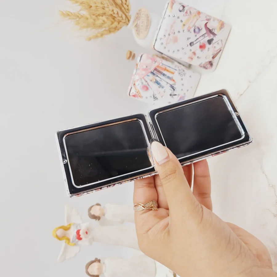 آینه دو طرفه جیبی طرح لوازم آرایش