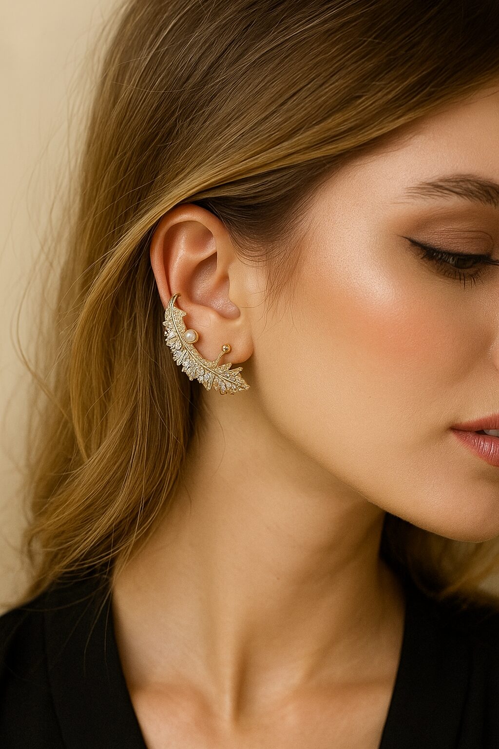 این ایرکاف طرح برگ زیبا طلایی، همچون نگاهی از طبیعت و جلوه‌ای از ظرافت بر روی گوش شما می‌درخشد 🍃✨