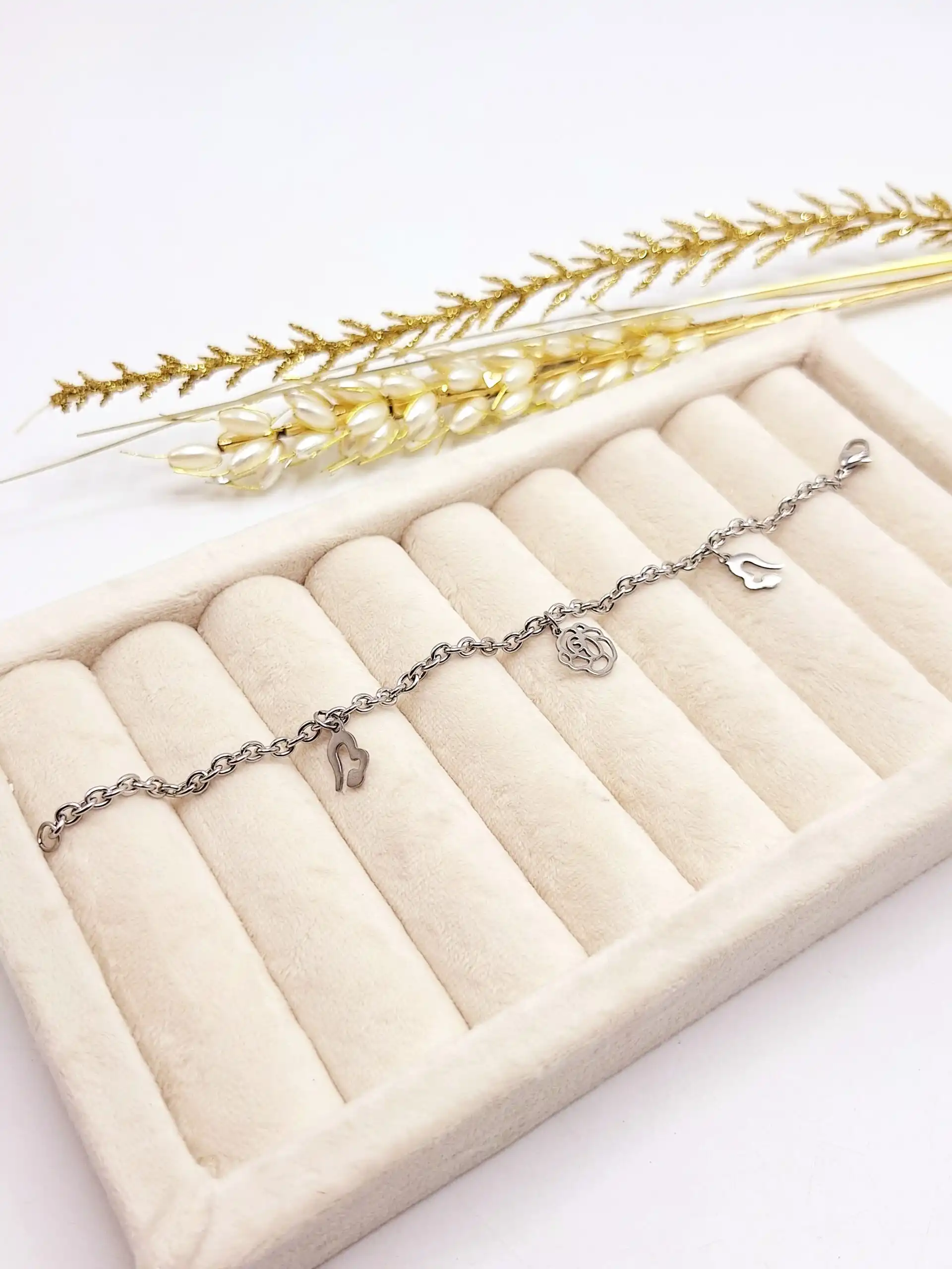دستبند زنجیری طرح گل استیل