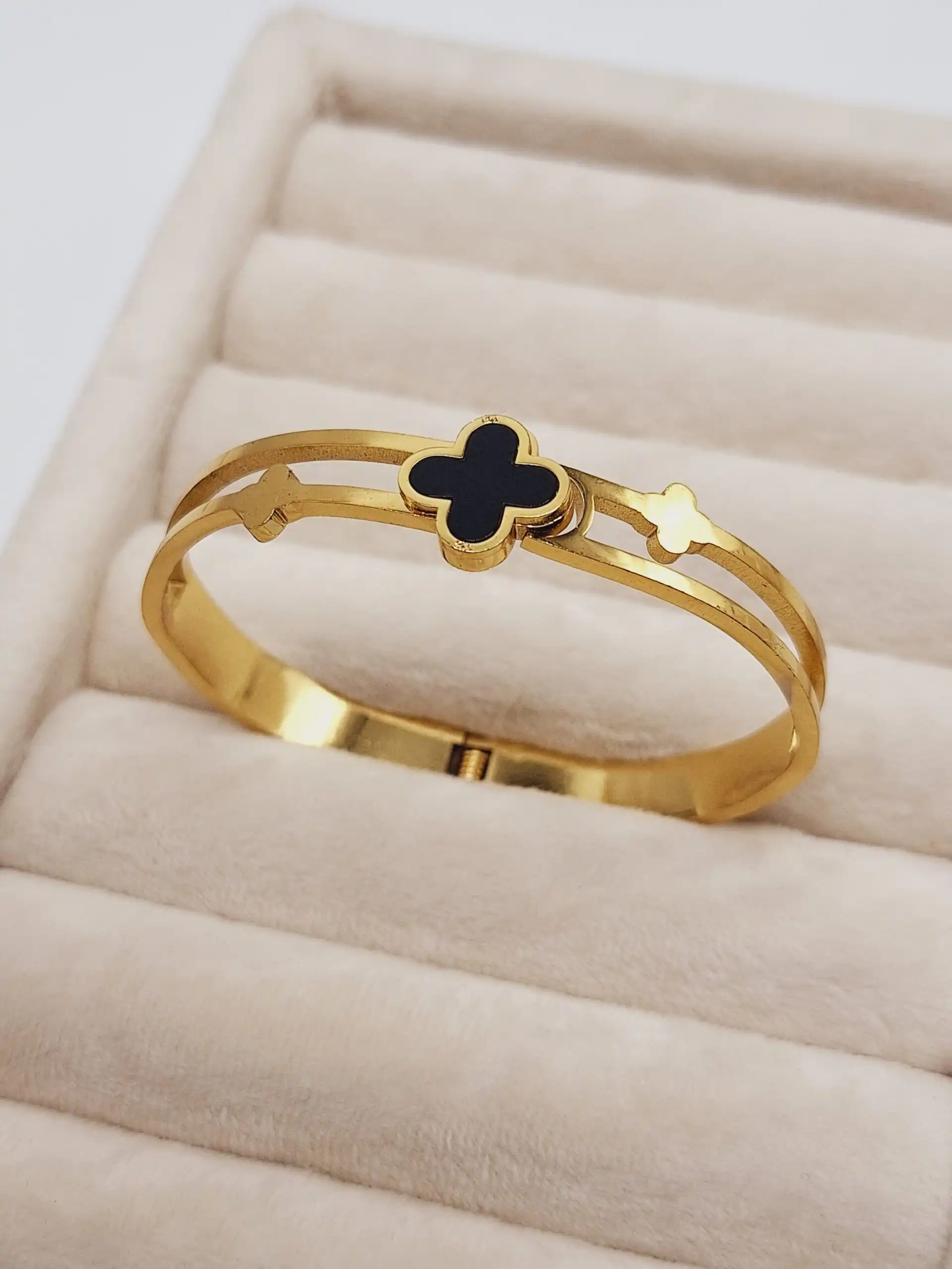 این دستبند طلایی طرح ونکلیف تک مشکی، ترکیبی از درخشش طلایی و جزئیات مشکی است 🌟🖤