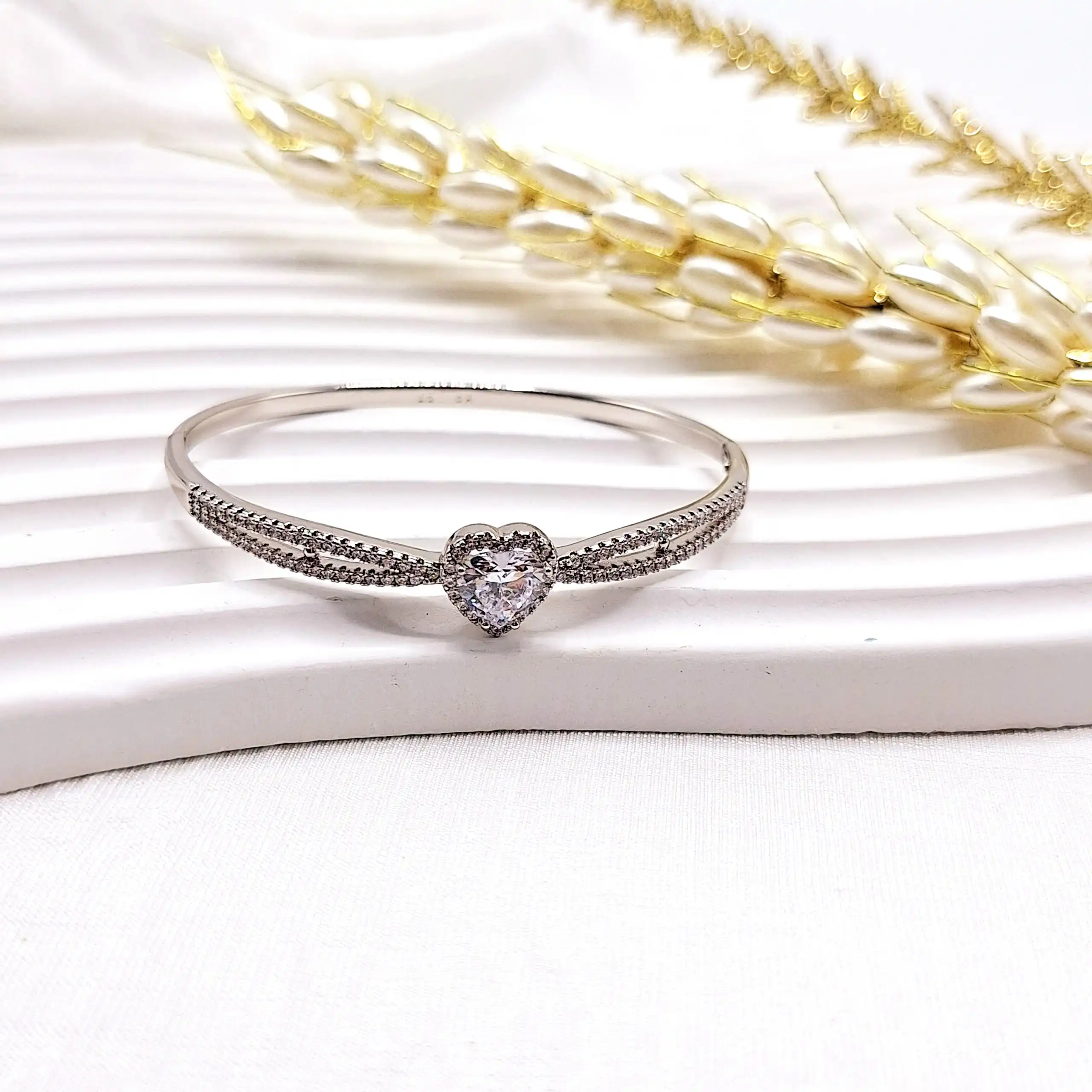 🆔 مدل: دستبند پینترستی طرح قلب نقرهای نگیندار استیل