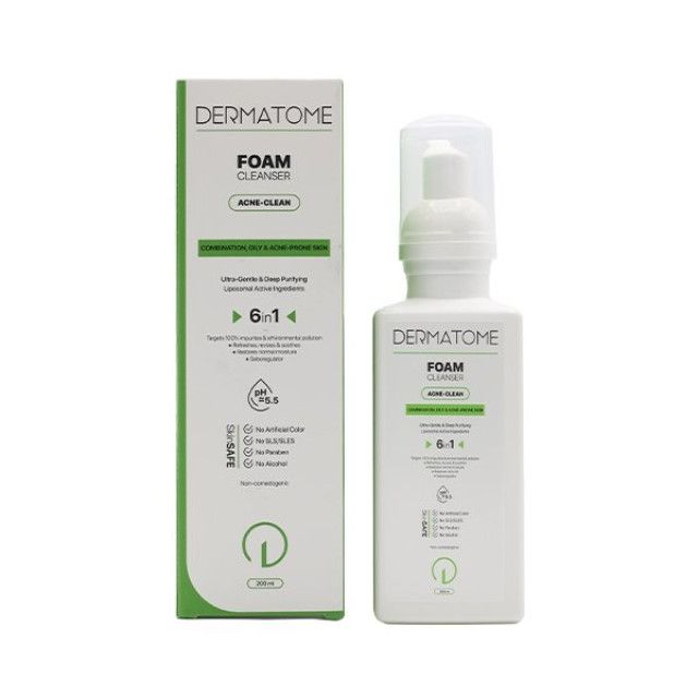 فوم شستشو آکنه کلین پوست چرب درماتوم محصولی بسیار ملایم و غیر صابونی می باشد که برای پوست های مختلط تا چرب و مستعد جوش بسیار مناسب می باشد. استفاده از این محصول با فرمولاسیونی که دارد تمامی آلودگی ها و باقی مانده مواد آرایشی بر روی پوست را از بین برده و پاکسازی می نماید. این فوم شستشو علاوه بر از بین بردن چشم گیر آکنه های روی پوست از ایجاد دوباره آن نیز جلوگیری می نماید.n n ترکیباتn دی سدیم لورت سولفوساکسینات، کوکامید پروپیل بتایین، دسیل گلوکوزاید، گلیسرین، مخلوط (فارنسیل استات و پنتنیل تری استات و توکو فریل استات)، مخلوط (سدیم لوولینات ، پتاسیم سوربات)، پانتنول، آلانتویین، کلیمبازول، عصاره آویشن، عصاره مریم گلی، بیزابول، زینک پی سی ای، اسید سیتریک، عصاره آلوئه ورا، دی سدیم ا.د.ت.ا، آب دیونیزه و …n n طریقه نگهداریn این محصول را در جاش خشک و حنک و به دور از تابش مستقیم نور آفتاب نگهداری نمایید.n n طریقه مصرفn ابتدا پوست صورت را با آب ولرم مرطوب نمایید سپس 2 الی 3 پاف از این محصول را بر روی دست قرار داده و به هم بمالید تا به خوبی کف کند، کف ایجاد شده را به صورت دورانی به خوبی بر روی پوست صورت حرکت داده و بعد از گذشت 2 الی 3 دقیقه پوست را به خوبی آبکشی نمایید.
