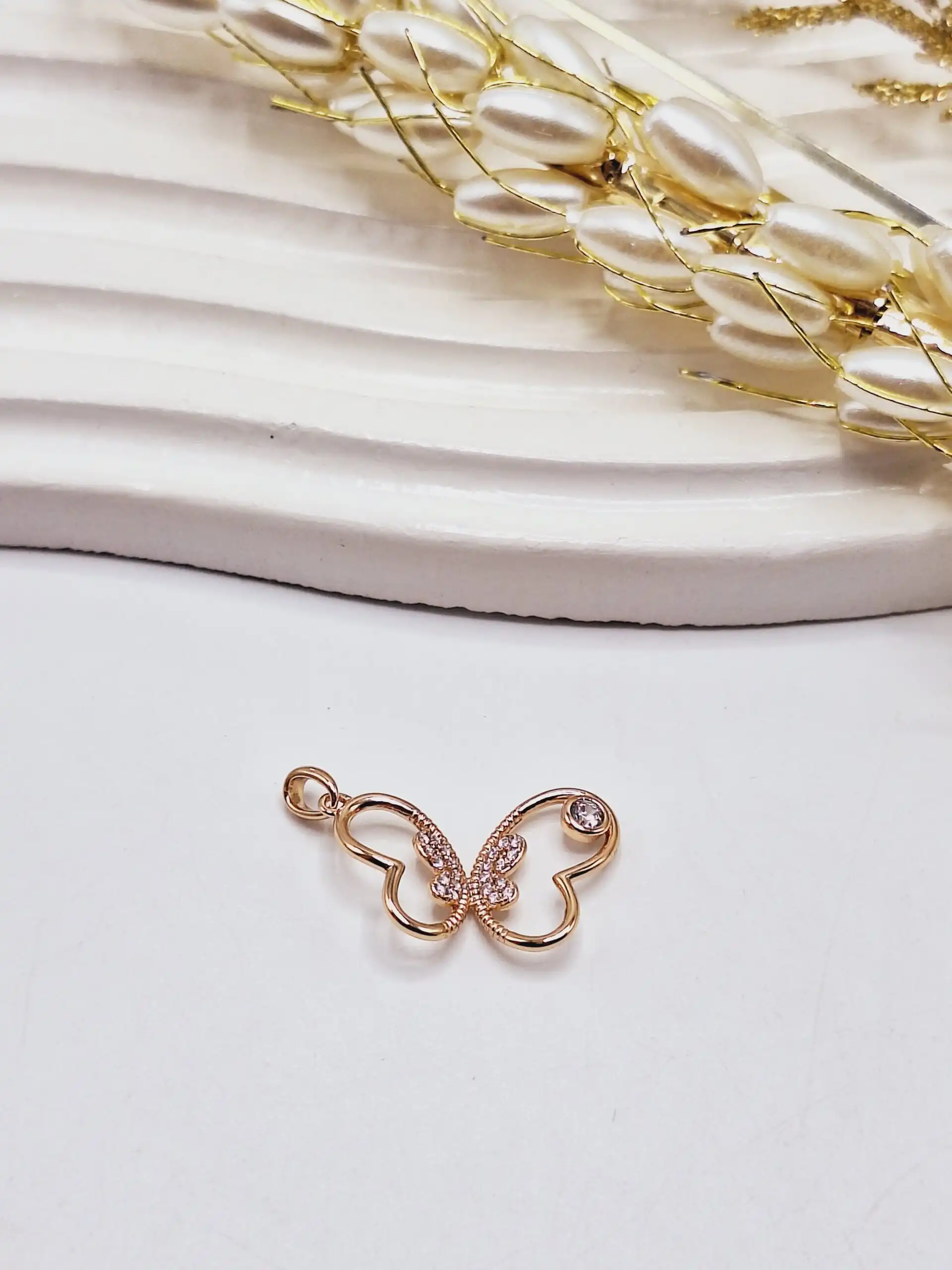 💖 پلاک پروانه نگین مینیمال طلایی ژوپینگ – الهام گرفته از ✨ ظرافت بالهای پروانه و درخشش نگینها