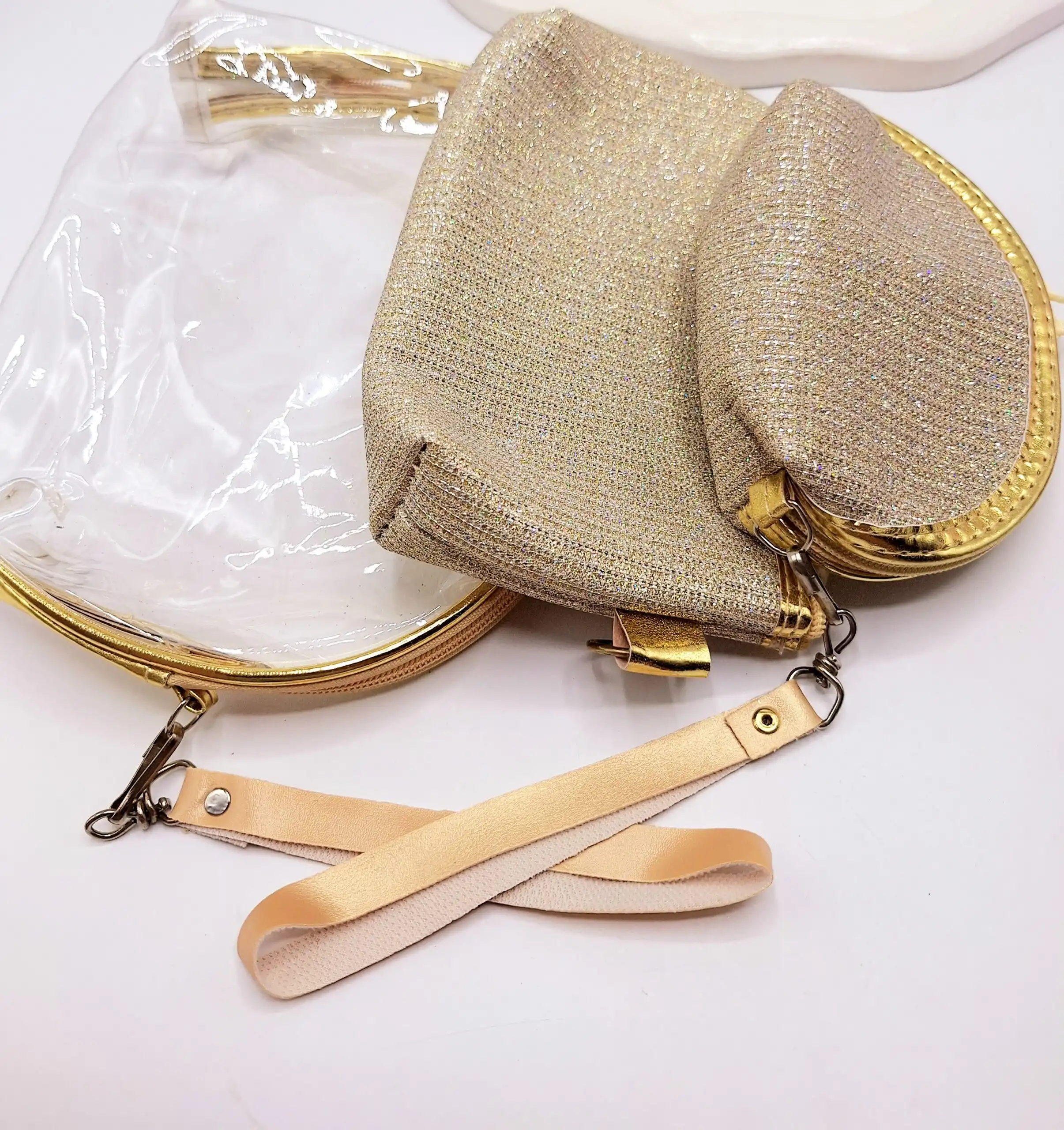 پک کیف آرایش 3 تایی طلقی شاین دار (طلایی)