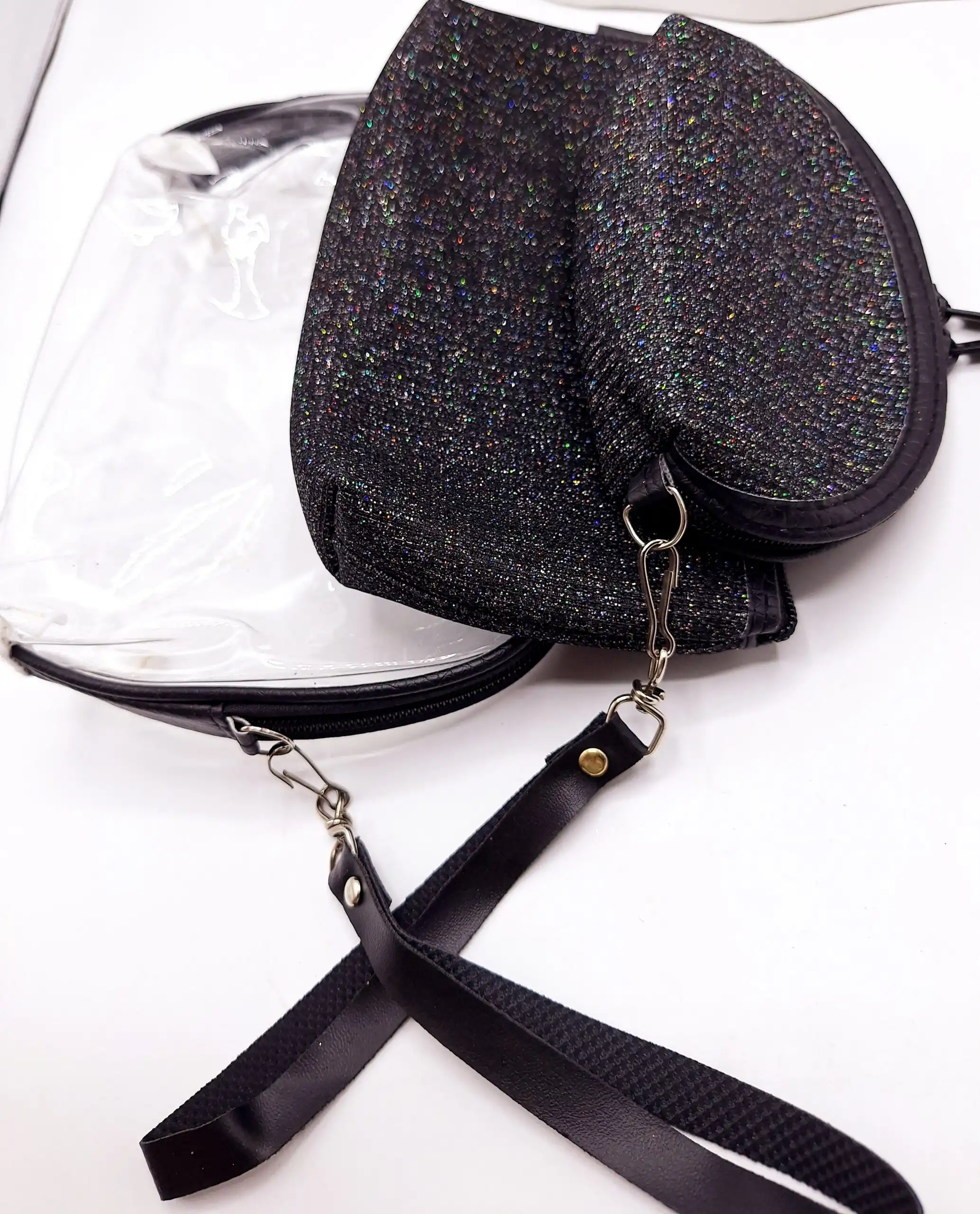 پک کیف آرایش 3 تایی طلقی شاین دار (مشکی)