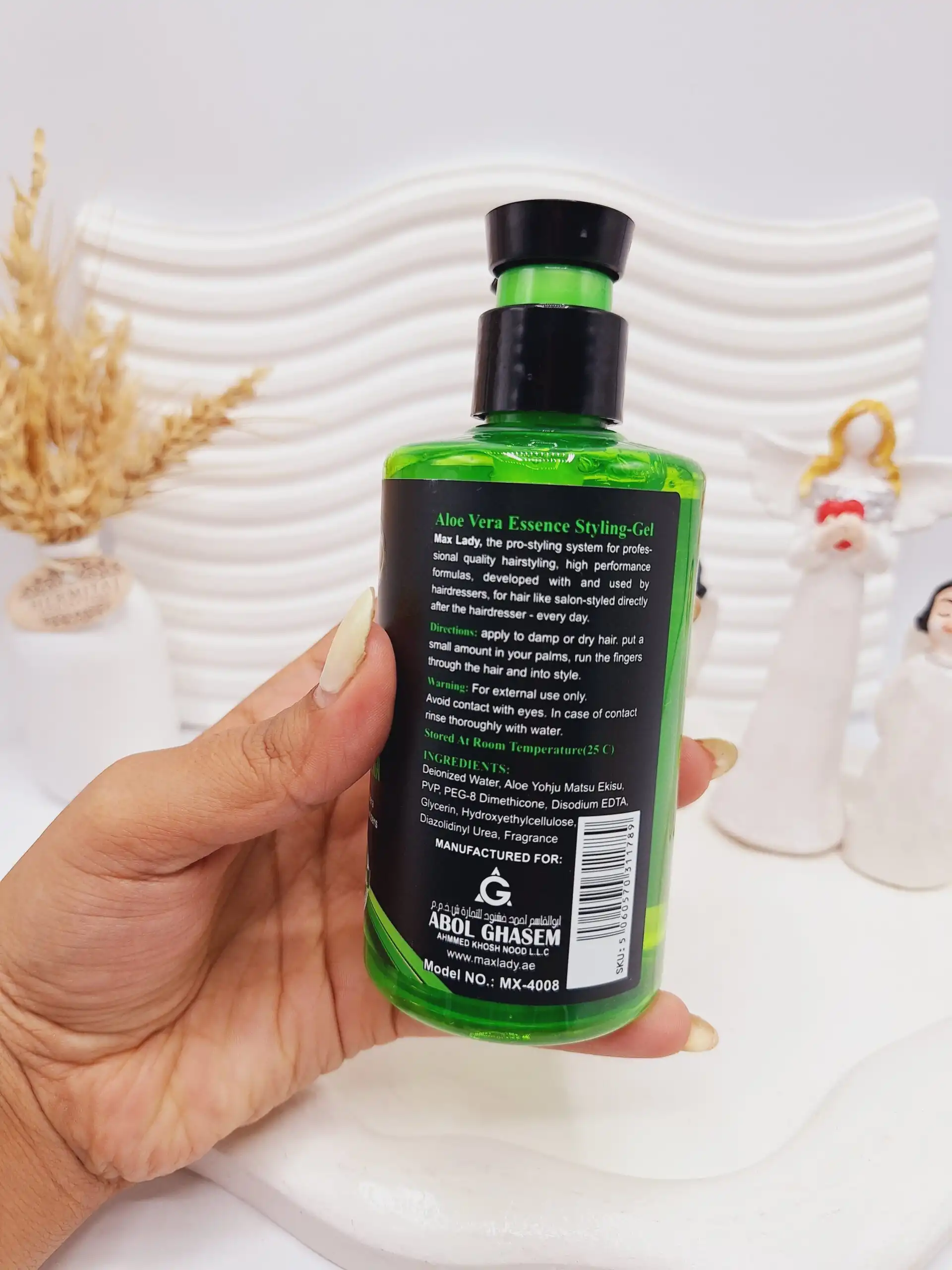 ژل مو حالت و براق کننده مو با عصاره آلوئه ورا برند max lady حجم 260 میل کد 1789