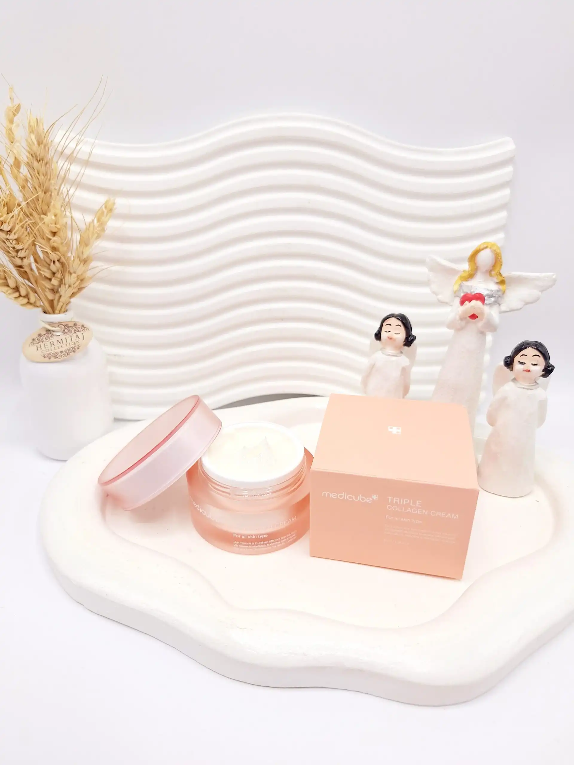 • حاوی: کلاژن سه‌گانه، هیالورونیک اسید، پپتیدها، نیاسینامید، سرامیدها