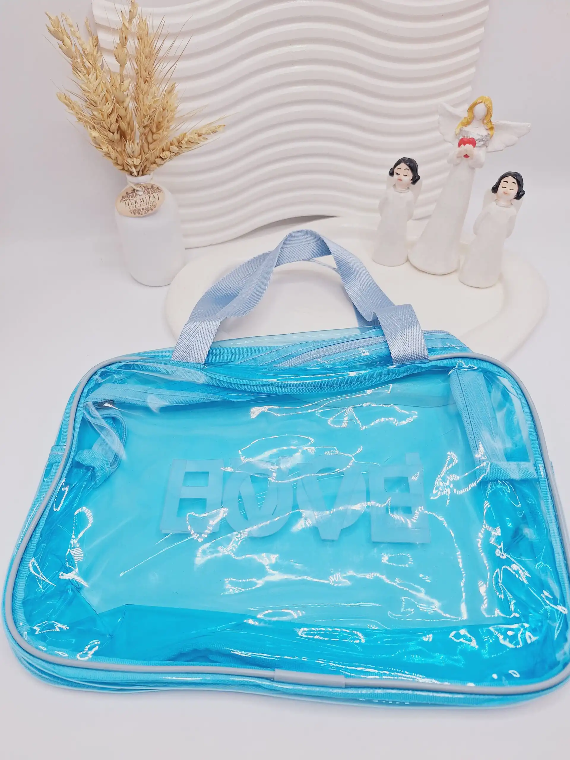 کیف لوازم آرایشی سایز بزرگ مدل LOVE (رنگ آبی)